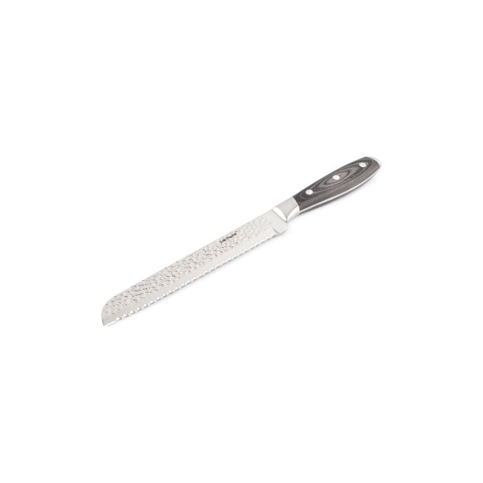Fabriqué en acier inoxydable de haute qualité, avec une finition martelée et un manche en bois de pakka, ce couteau à pain de notre collection "Chop" est à la fois élégant et fonctionnel. La lame tranchante et dentelée tranche le pain sans effort, tandis que la construction robuste garantit une longue durée de vie. Associez-le à nos planches à découper et à servir assorties, fabriquées en bois de manguier lisse, pour une touche d'élégance rustique. Parfaits pour servir de délicieux amuse-gueules aux invités, ces plateaux ajoutent une touche de sophistication à tout décor de table.
