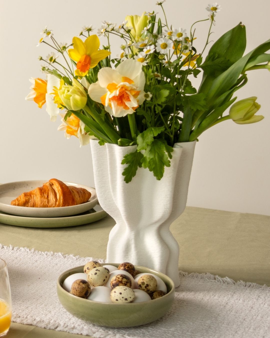 If you don’t want to use an Easter branch, why not opt for a bouquet of flowers on the table? Fresh flowers instantly add colour, fragrance and vibrancy, and complement the soft tones of your tableware perfectly. This creates a cheerful, natural touch that instantly brightens up any table