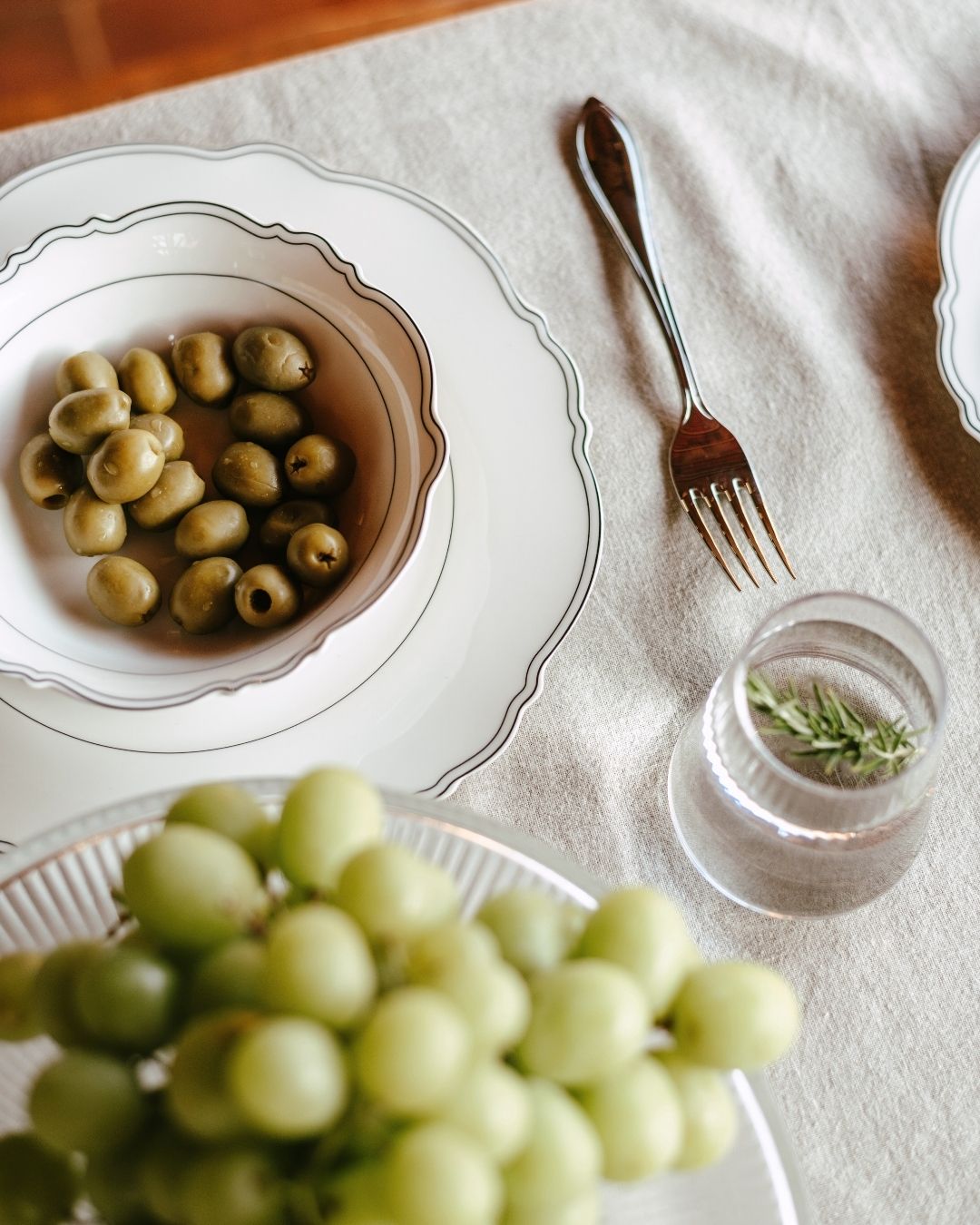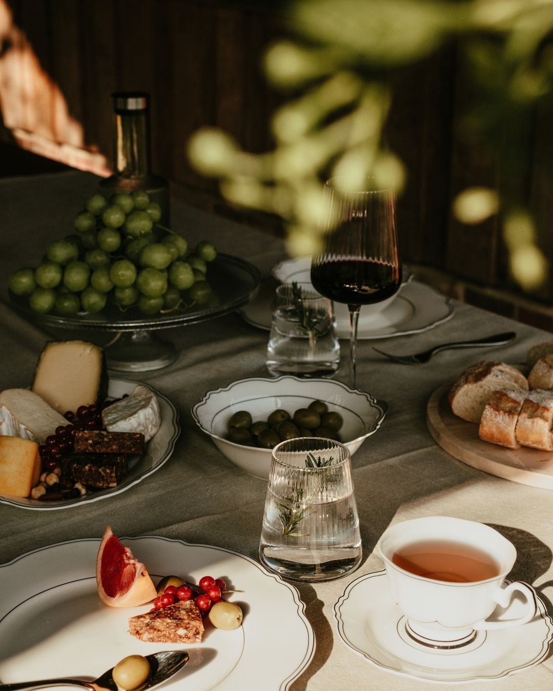 The Odette collection: elegant white porcelain with a refined black rim and stylish retro shapes reminiscent of a cosy bistro. Glassware from the Ray collection sparkles in the evening light, serving pieces in light mango wood from the Rural collection bring natural warmth, and a generously filled transparent Aristo cake stand completes the setting. The result is a spring table that feels stylish, harmonious and inviting — perfect for enjoying the first rays of sunshine together.