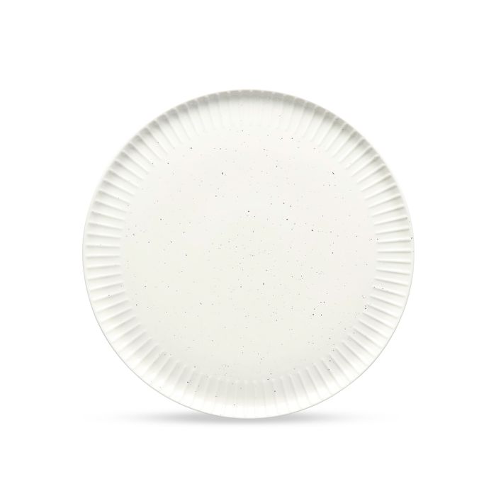 Serve your culinary creations in style with the 26.5cm white plate from the Ora Gloss collection. Its subtle speckled glaze and ribbed relief make it ideal for showcasing your favorite dishes. Perfect for home dining, it's both durable and dishwasher safe.