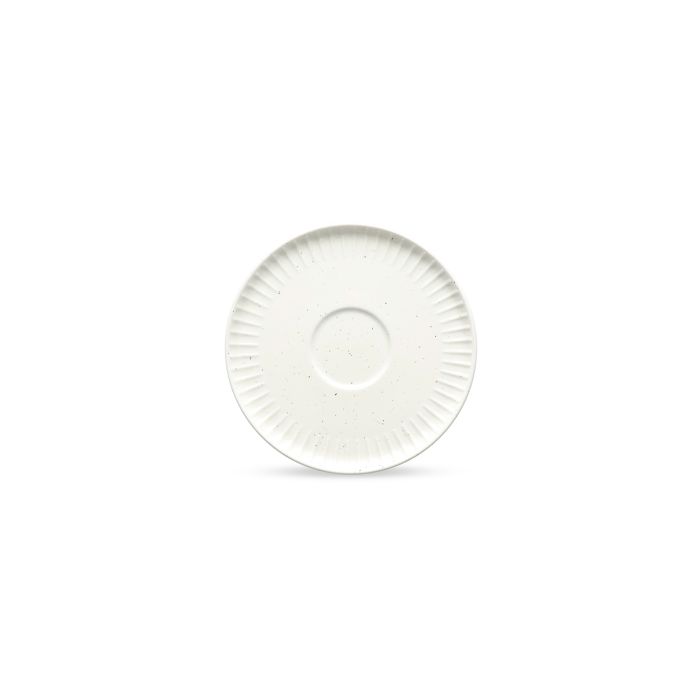 Serve in style with the 14.5 cm white saucer from the Ora Gloss collection. Perfect for coffee occasions or presenting sweets. The speckled glaze and ribbed relief add a stylish touch to any table setting. Dishwasher safe for easy cleaning.
