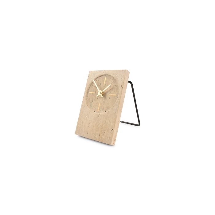 The new variants of the Zone collection ensure that we will never lose track of time again. For this version, we have given the classic table clock a modern twist by using travertine. The combination with the golden hands creates a fresh look that fits perfectly in any interior. Discover here how you can restore this clock when the hour hand is loose.