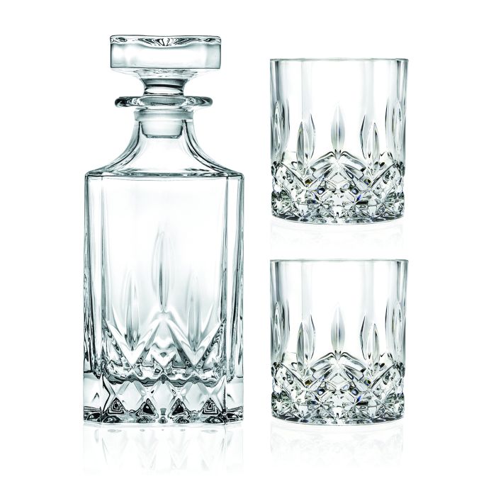 The sophisticated Bar glassware range is the perfect gift for the cocktail mixologist. Bar offers you cut glass decanters and glass sets with on-trend patterns and textures, together with a bar set in stainless steel to make entertaining more fun. Bar is a European product, offering superior quality.The 3-piece set includes: 2 x whisky glass 30cl1 x whisky decanter 1,08L