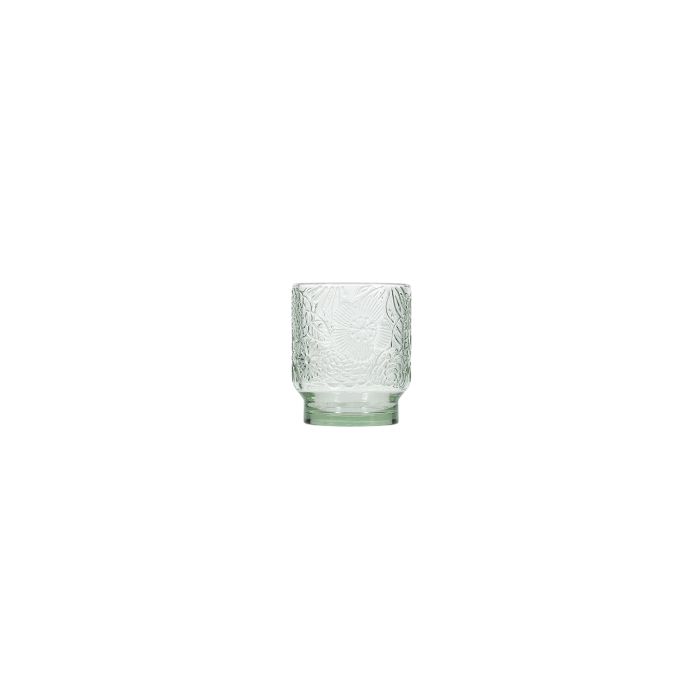 Breng een frisse touch aan je tafel met het 30 cl lichtgroene Flora-glas. Het subtiele bloemenreliëf maakt elk glas uniek, terwijl het stapelbare, vaatwasmachinebestendig en stevige ontwerp praktisch is voor dagelijks gebruik.