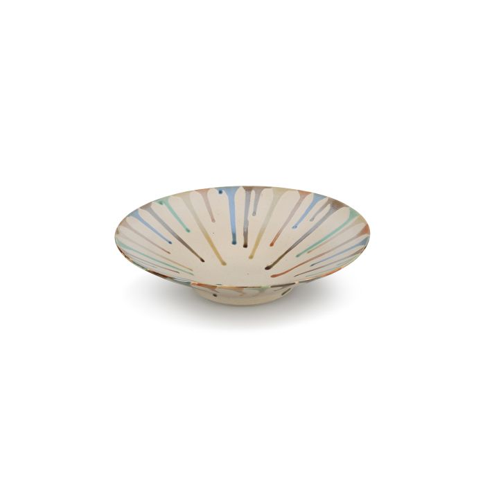 Verlicht je ruimte met de decoratieve schaal van 36 cm uit de Vivid-collectie. Dit met de hand beschilderde stuk, met een speelse mix van blauw, groen, geel, bruin en rood op een beige achtergrond, is perfect voor het serveren van kleurrijke salades of verse vruchten. Ideaal voor thuismaaltijden of feestjes, het brengt een levendige twist aan elke tafelsetting.